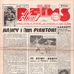 Allez Reims n°112 (28/10/1956) Document AllezReims_112 (Avec filigrane) Download MetadataDate28/10/1956AdversaireFC NancySaison1956-57SourceArchives Reims FootballCollectionsAllez ReimsAttachments