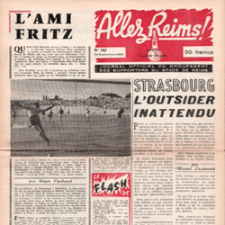 Allez Reims n°147 (24/09/1958) Document AllezReims_147 (Avec filigrane) Download MetadataDate24/09/1958AdversaireRC StrasbourgSaison1958-59SourceArchives Reims FootballCollectionsAllez ReimsAttachments