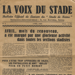 La Voix du Stade n°2 (Avril 1946) Document La Voix du Stade 2 Download MetadataTitreLa Voix du Stade n°2 (Avril 1946)Date01/04/1946Saison1945-46SourceBibliothèque nationale de France, GallicaCollectionsLa Voix du StadeAttachments